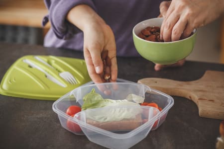 - Intente planear sus almuerzos y otras comidas por adelantado cada semana. Tenga a mano refrigerios saludables que estén listos para comer durante el día.