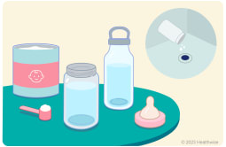 - Para entibiar la leche de fórmula de su bebé, ponga el biberón en agua caliente. No use un microondas.