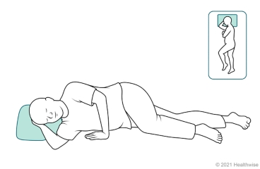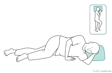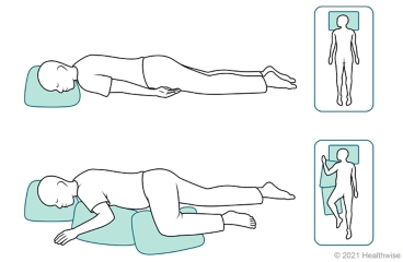 Permanezca en cada una de estas posiciones por entre 30 minutos y 2 horas. La cantidad de tiempo adecuada para usted depende del consejo de su médico y del tiempo que pueda mantenerse cómodo. Si alguna de estas posiciones empieza a causarle dolor o le empeora la respiración, deténgase y pruebe con otra.