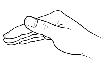 Ahueque la mano para formar una "copa". Comience con la mano extendida. Doble la mano ligeramente a la altura de los nudillos y mantenga juntos el dedo índice y el pulgar. Use esta posición de la mano para la percusión con el fin de ayudar a eliminar la mucosidad.