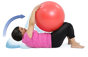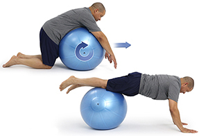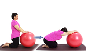 - Presione el balón con los brazos. Inclínese hacia adelante desde las rodillas. Esto hace rodar el balón hacia adelante. Usted soportará la mayor parte de su peso con los brazos.