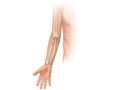 El radio se conecta a la articulación del codo en un extremo. El otro extremo se conecta a la articulación de la muñeca.
