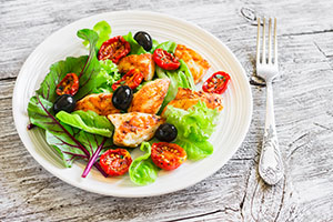 - Elija alimentos con proteínas magras como aves, pescado, tofu, frijoles y cortes magros de carne.