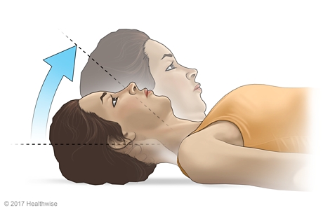 - Flexione el cuello hacia adelante de modo que la barbilla se acerque al pecho.
