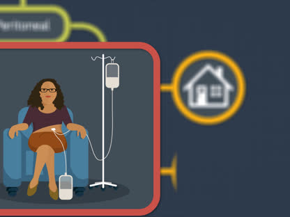 Usa el revestimiento del abdomen (membrana peritoneal) para filtrar la sangre. Antes de poder comenzar, un cirujano debe colocarle un catéter en el abdomen para crear el acceso de diálisis.
