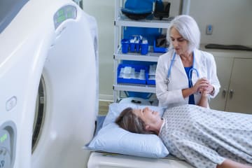 - Se acostará en una mesa que forma parte del equipo de resonancia magnética.