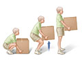 - Protéjase la espalda cuando levante cosas pesadas. Por ejemplo, levante los objetos con las piernas, en lugar de hacerlo con la espalda. No se incline hacia adelante a la altura de la cintura cuando levante objetos. Flexione las rodillas y póngase en cuclillas.