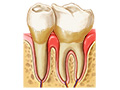 - Depósitos duros de placa y sarro por encima y por debajo de las encías.