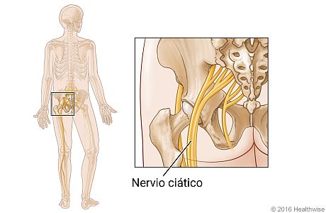 El nervio ciático es el nervio más grande del cuerpo. Está formado por las raíces nerviosas que salen de la médula espinal en la parte baja de la espalda. El nervio desciende por la nalga y luego sus ramas se extienden bajando por la parte posterior de la pierna hasta el tobillo y el pie.