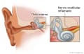 Vea imágenes del oído interno que muestran el laberinto y un nervio vestibular inflamado.