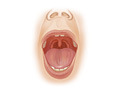 - El tejido blando con forma de dedo que cuelga en el fondo del paladar en la entrada de la garganta (úvula).