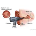 El médico usa una herramienta llamada otoscopio neumático para observar el tímpano para detectar señales de infección del oído o acumulación de líquido. Por ejemplo, el médico puede ver si el tímpano se mueve libremente cuando el otoscopio empuja aire dentro del oído.