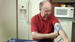 - Siéntese con el brazo ligeramente flexionado y apoyado en una mesa de forma que la parte superior del brazo quede a la misma altura que el corazón.