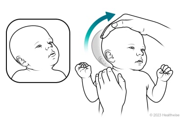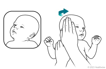 - Gire la cara de su bebé hacia el hombro derecho con cuidado y despacio.