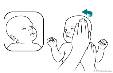 - Gire la cara de su bebé hacia el hombro izquierdo con cuidado y despacio.