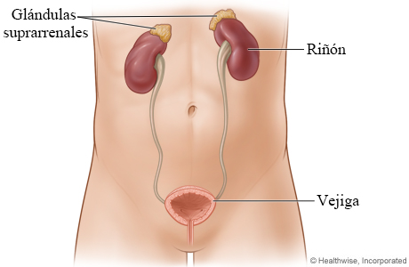 Las glándulas suprarrenales se ubican en la parte superior de los riñones.