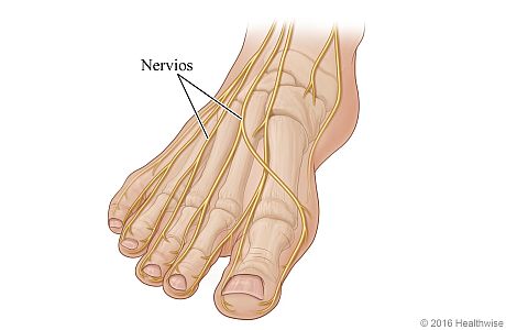 Hay nervios que pasan por todo el pie y controlan el movimiento y las sensaciones en diferentes partes del pie.