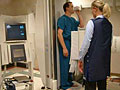 El radiólogo observa el paso del bario a través del tracto gastrointestinal mediante el uso de la fluoroscopia y de radiografías. La camilla se inclina en diferentes posiciones y usted puede cambiar de posición para ayudar a esparcir el bario. Se aplica un poco de presión suave en su abdomen con un cinturón o con la mano enguantada del técnico. Se le puede pedir que tosa para que el radiólogo vea cómo esa acción cambia el flujo del bario. Vea una imagen de una ingestión de bario.