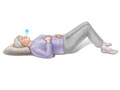 - Acuéstese boca arriba con las rodillas dobladas y los pies sobre el piso. Debe tener las rodillas flexionadas a aproximadamente 90 grados.